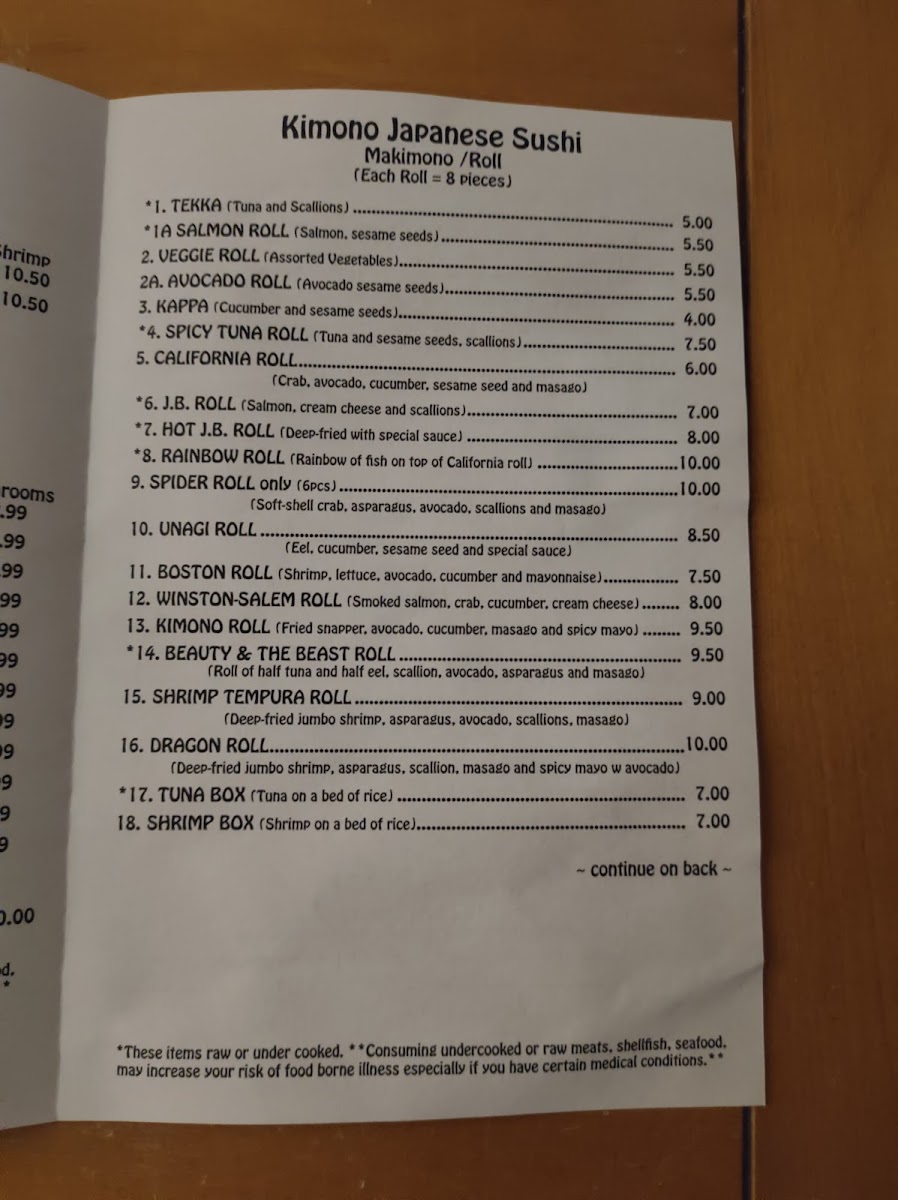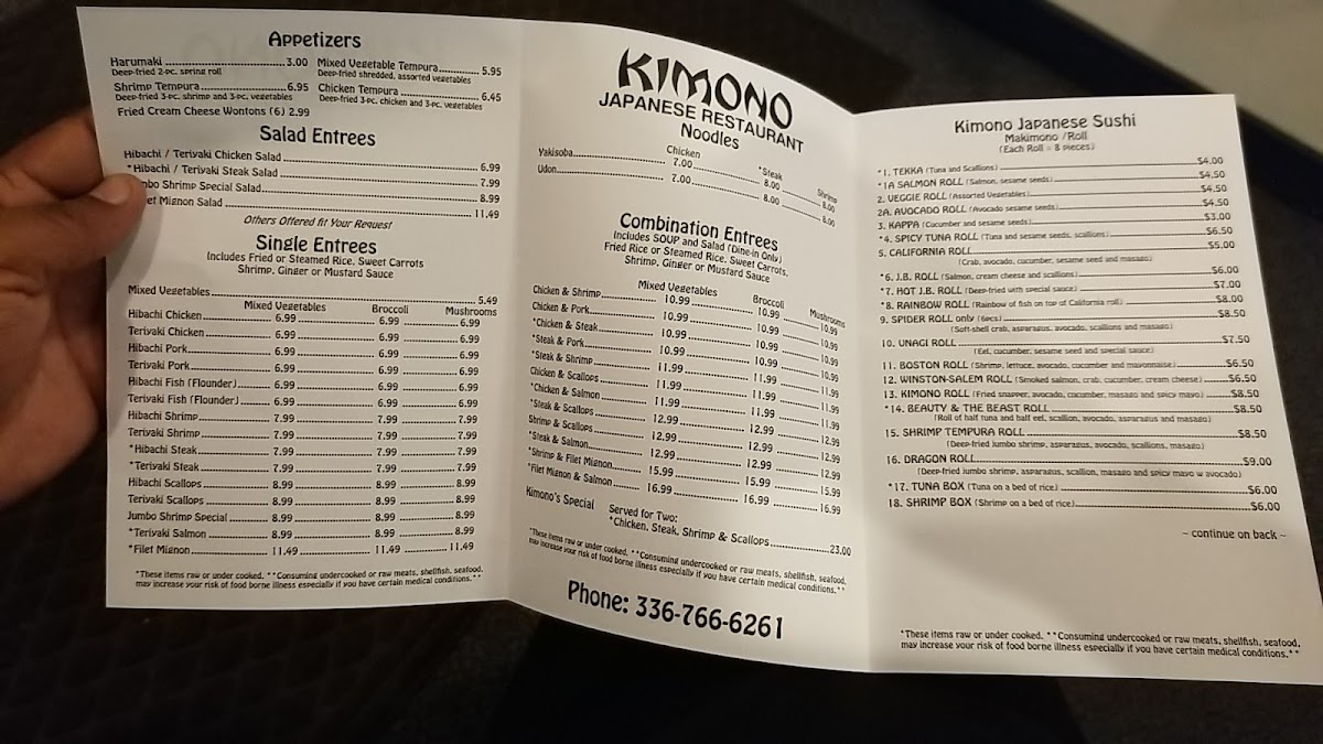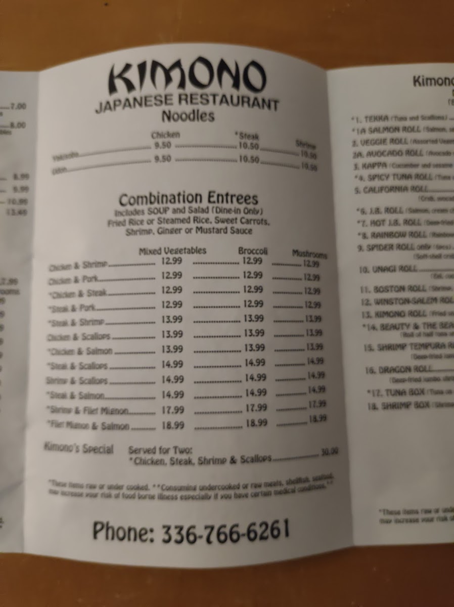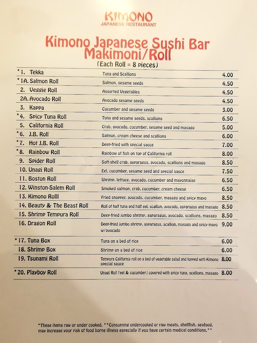 Kimono Japanese Restaurant Menu