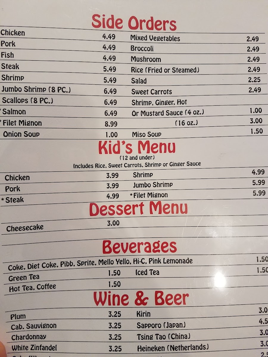 Whether you're drawn to the delicate balance of teriyaki and hibachi preparations or the heartier sides of mixed vegetables and noodles, the menu supports a warm and approachable dining experience that encourages easy enjoyment and return visits.